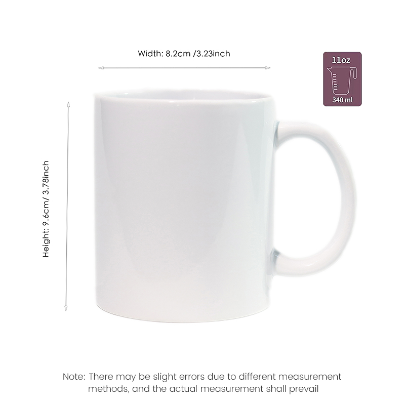 The large, pure white surface of the cup is ideal for creative customization. Customize with your favorite designs and text. Whether you're capturing moments, creating a unique identity, or creating a thoughtful gift, the cup is yours to make. Perfect for Everyday Use: The 340ml capacity is perfect for daily coffee, tea, or water needs, whether it's a breakfast beverage or a hydration fix at work or school. You won't need frequent refills due to a small capacity, nor will you waste a large cup due to an oversized one.